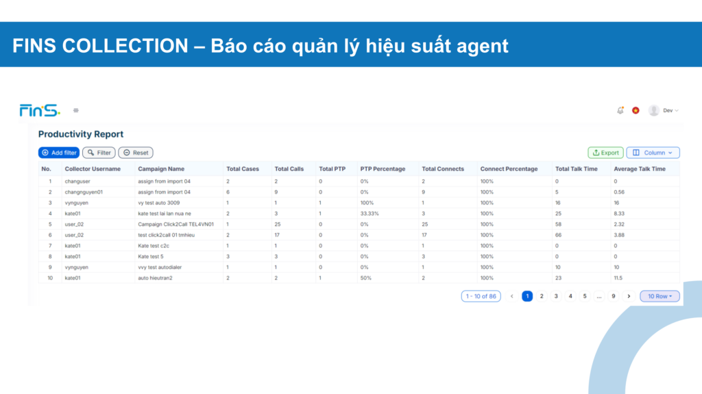 – Các báo cáo về hiệu suất của agent và lịch sử tác nghiệp được thống kê theo thời gian thực, giúp quản lý kiểm soát nhanh chóng.