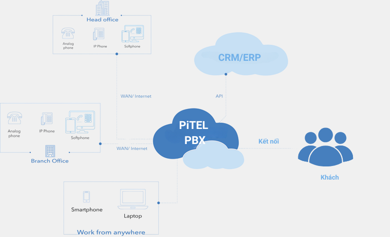 - PiTEL Connect/Mobile: Dùng softphone/app để làm việc mọi lúc, tiết kiệm chi phí thiết bị.