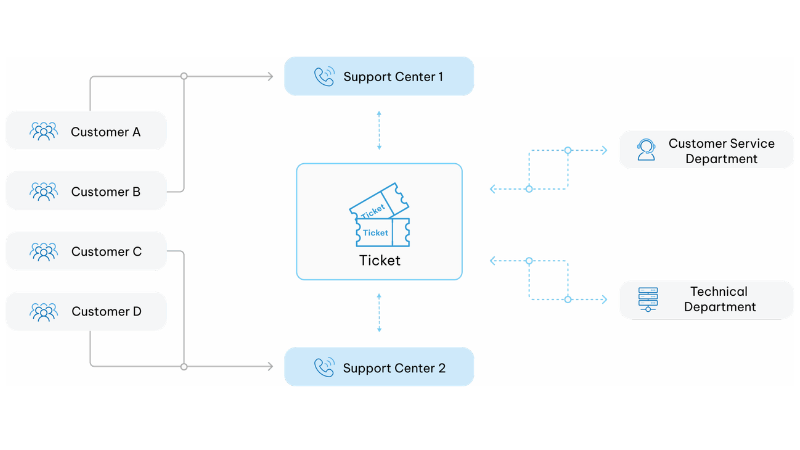 Hệ thống ticket là hệ thống chuyển đổi mọi yêu cầu từ khách hàng thành phiếu có mã định danh riêng. Mỗi phiếu ghi lại toàn bộ lịch sử tương tác, người phụ trách, trạng thái xử lý và mức độ ưu tiên. Khác với email thông thường, hệ thống ticket tập trung mọi thông tin vào một nơi, tránh tình trạng thông tin rải rác giữa nhiều người.